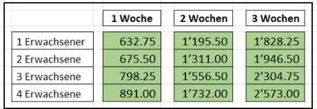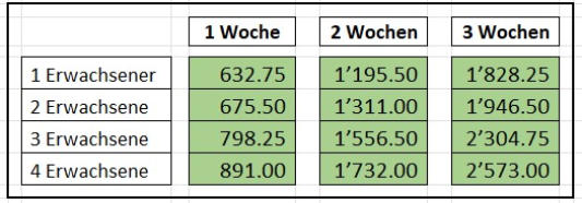 Gesamtpreise für Direktbuchung über W. Rupper, Preise in CHF
